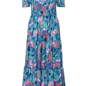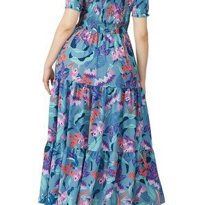City Chic Aqua Blue Floral Maxi Dress with Smocked Bodice Plus Size 18