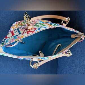 Vibrant and stylish tote bag featuring a multicolor design. Perfect for adding a pop of color to any outfit.