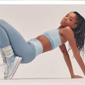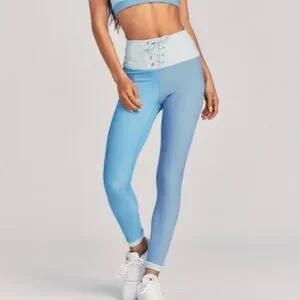LoveShackFancy x Beach Riot Riley Blue Ribbed Lace Up Legging XL