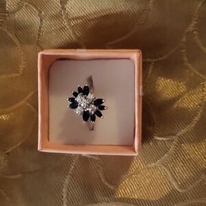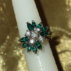 💍Elegant Silver and Emerald Floral Ring💍Size 6