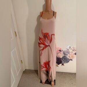 Like new Musier Paris Avina Dress in Nude With Rose Print pink floral maxi
