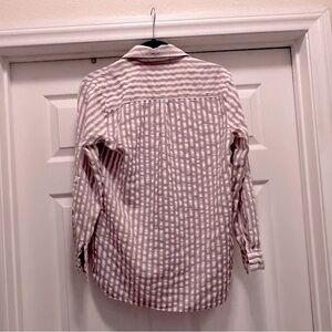 Flawless Long Sleeve Button Up Cream Beige and White Striped Casual Shirt Size M