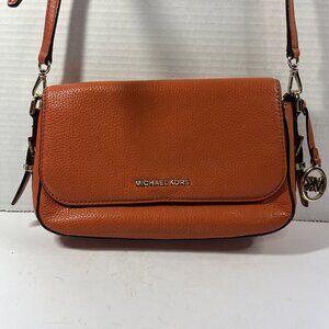 MICHAEL KORS Orange Satchel Crossbody Pebbled Leather Gold Hardware Flap Pockets