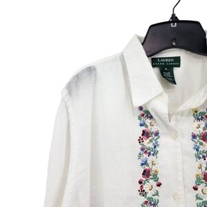 Lauren Ralph Lauren Women's 100% Linen Embroidered Button Front Shirt - XL