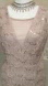 This elegant sleeveless dress features a delicate sequined lace overlay in a beautiful blush pink. Perfect for special occasions, it offers a flattering fit and a sophisticated look. It has lovely sheer cut outs at the waist and deep v-neckline