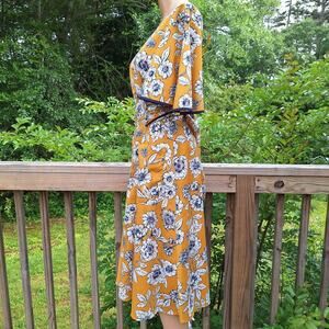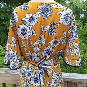 Eliza J Floral Fit & Flare Midi Dress Women's 8 Flutter Sleeve Pockets Retro