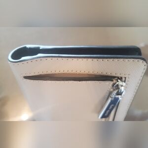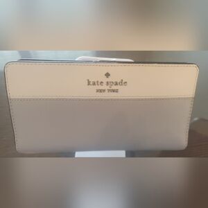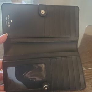 This KATE SPADE wallet is minimalist in design and has high-quality craftsmanship. The snap closure wallet has plenty of space for cards, ID, bills and a zipper closure for change.