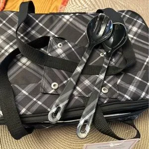 Thirty-One Blk Pick Me Plaid Perfect Party Hot Cold Tote & Serving Utensils NWT