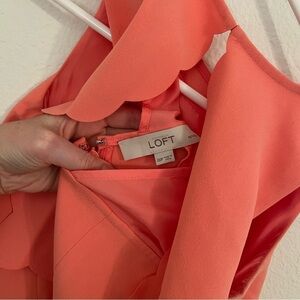 Ann Taylor LOFT Coral Salmon Pink Scallop Layered Sleeveless Womens Dress