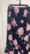 Navy blue floral skirt length is 34 waist is elastic 16 stretch to 18 material is 100% polyester made in Canada