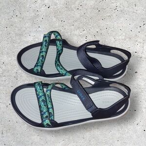 CROCS Sandals Swiftwater Webbing Green Blue Black Women’s Size 9