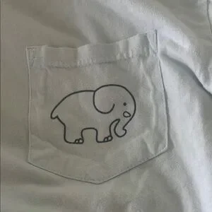 Light blue long sleeve tee. Features elephant pocket design. Soft and comfortable. 100% cotton. Save the elephants