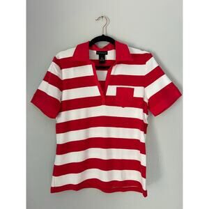Red and White Striped Polo T-Shirt Womens Size Large July 4th Patriotic Nautical