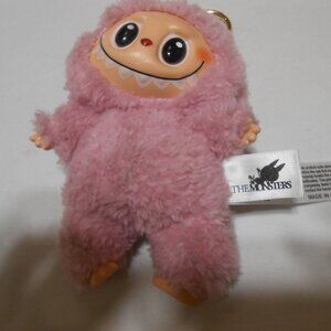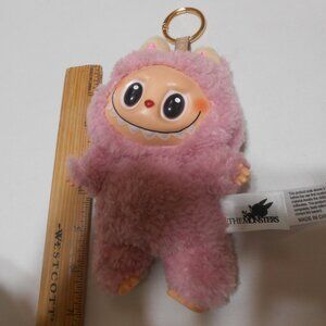 Adorable pink plush monster keychain from . Perfect for kids who love fun and cuddly toys. Easy to attach to bags or keys. Not authentic Labubu