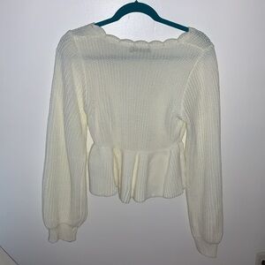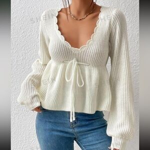 Crochet Knit Long Sleeve V Neck Sweater