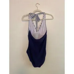 Women’s Navy & White Striped Halter One-Piece Swimsuit With Padded Cups Size S