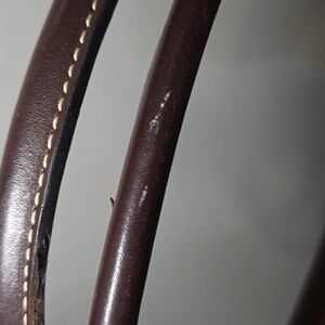 Dooney & Bourke large tote shoulder bag. Buckle closure. Double handles. Tan with brown leather accents and silver hardware. Two main compartments with a zipped middle area. Side zip interior pocket along with three slide pockets. In good condition with some minor signs of wear. No holes or tears, but some staining on the interior and scuffs on the exterior trim. Please pay close attention to the photos and video, and if you have any questions, please ask.