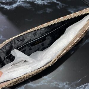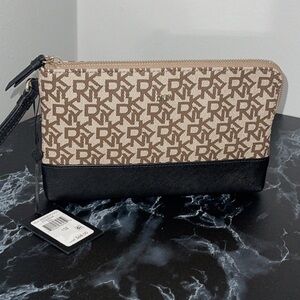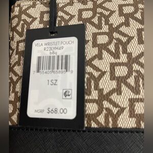 DKNY Vela Wristlet Pouch Brown Black Zip Top NEW AUTHENTIC -Store Display