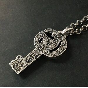 GUCCI Double G Key Motif Arabesque Silver 925 Pendant Necklace