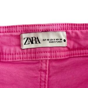 Zara ZW The Marine Straight Jeans Sz 8 Pink High Waist Cutoff Denim Pants