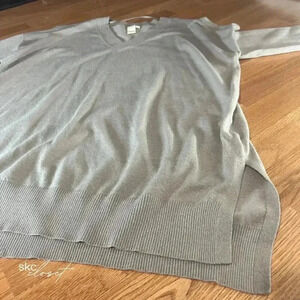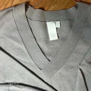 ADY P Women's Taupe Long-Sleeve, V-Neck, Fanny Sweater, L