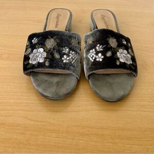 Zigi Soho velvet floral gray slides with small chunky heel