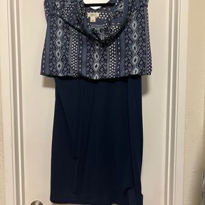 Style & Co Blue Gray Print Flare Sleeveless Dress - size L