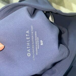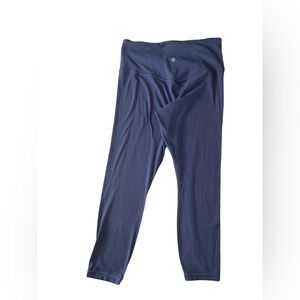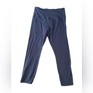 Comfortable and stretchy leggings. High-waisted design. 7/8 . Tiny wear hole on the left leg. Not noticeable when wearing. Normal wear but in good shape overall