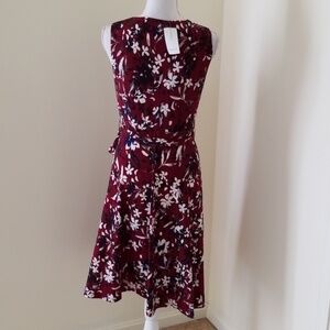 New! Charter Club Cranberry Printed Size PS Sleevelss Dress with a waist tie