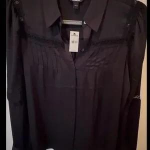 This sophisticated black blouse from Express is crafted with a sleek and timeless design, perfect for elevating any outfit. Its versatile style makes it an ideal choice for both professional and casual occasions. The high-quality fabric ensures comfort and durability, making it a staple piece in your wardrobe.