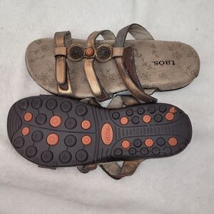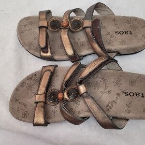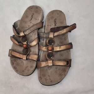 Preowned Pewter TAOS Prize 3 Sandals Size