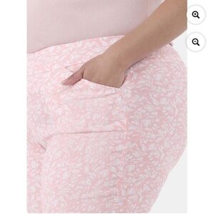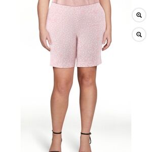 Floral, Pink and White, Pull-on Millennium Shorts, 9” Inseam, Elastic Waistband, Easy On Easy Off, High Rise, Front Pockets, Stretch, Comfortable, 76% Rayon 21% Nylon 3% Spandex, Size 1X , NEW.