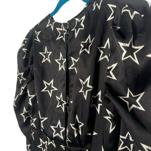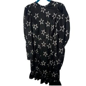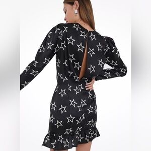 River Island Star Print Black 80's Retro Mini Dress Key hole back long sleeve