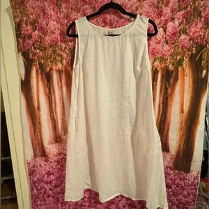 Iyu linen A line basic white dress with pockets. Unlined. Great for layering.