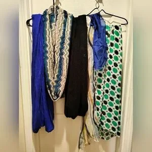 6 Piece Scarf Lot- From Winter Calvin Wrap , Wispy Lane Bryant,To Neckline Sheer
