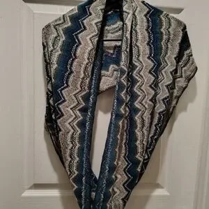 Boho teal , Chevron, light sweater wrap scarf.