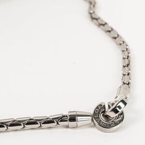 Featuring a single compartment, the model is completed by a zipped top closure, an internal flat open pocket and the Bvlgari metal logo on the back.
