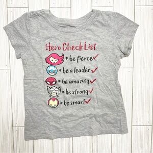 Marvel: Gray cap sleeve shirt, "Hero Checklist..." graphic on front, can be used during the holidays or not, Size Medium (7/8)