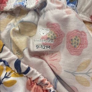 Adorable baby dress with colorful floral and butterfly patterns. Perfect for a cheerful look.