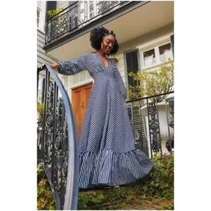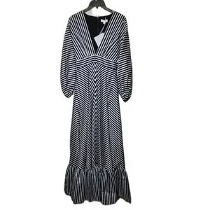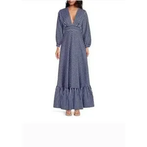 NWT Gianni Bini Maxi Dress 2 Navy White Grey Genevieve Striped Nautical Glam