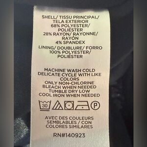 Shell 68% Polyester 28% Rayon 4% Spandex, Lining 100% Polyester