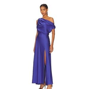 ASTR X Revolve Monroe dress. Size small. Beautiful blue gown, worn once. Great quality silk. Unique stand out color with leg slit and off the shoulder design. Very flattering. Dry cleaned from one wear!
