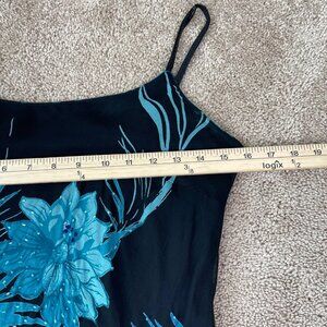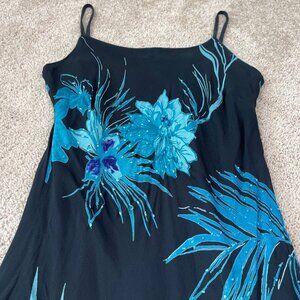 Eva Blue Dress Womens M Blue Floral Tropical Beaded Midi Y2K Whimsygoth Fairy