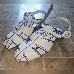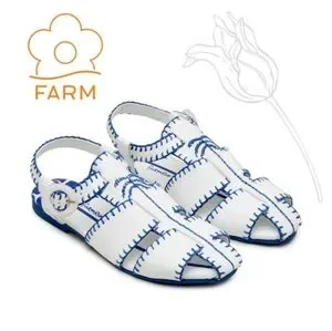 NWT FARM Rio Blue Palm Tree Embroidered Sandals Size 9.5