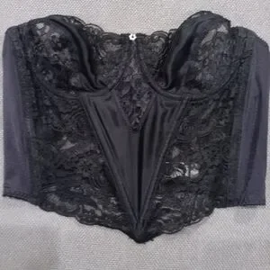 This Dior black lace bustier features a romantic sweetheart neckline and intricate lace detailing, offering a luxurious and elegant addition to your intimate collection.