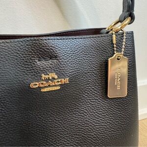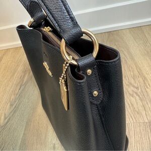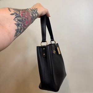 Coach Small Town Bucket Bag Black Pebbled Leather Gold Hardware Shoulder Bag