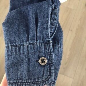 In good pre-worn condition! Material is very soft but not stretchy. Sleeves can roll up and button. 100% cotton. There’s also a small line across the front of the shirt.