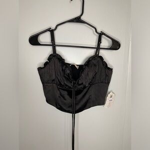 Altar'd State Black Corset Crop Top Adjustable Straps Size Medium Tie Front