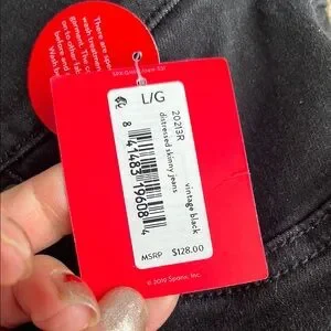 These are brand new with tags! Experience the perfect blend of style and comfort with these SPANX skinny jeans in a classic black hue. The distressed knee detail adds a touch of modern edge, making them a versatile choice for any occasion. Enjoy a flattering fit that effortlessly complements your wardrobe. Approximate measurements are 16 inch elastic waist 11 1/2 inches from waist to crotch with a 27 inch inseam. These have a raw heam at the bottom. As always, smoke and pet free home. Same day shipping! Willing to negotiate prices.