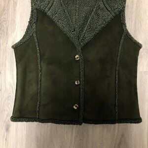 L.L. Bean Women's Size Large Green Vegan Suede Shearling Fleece Vest Penny Lane